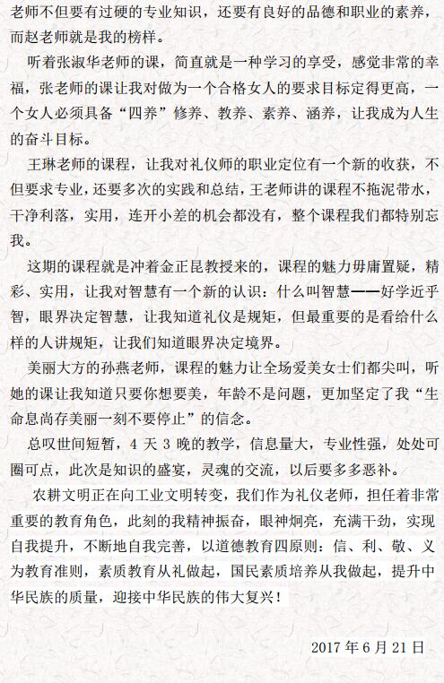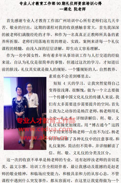 90期专业人才教育礼仪师资班学习心得—湖北阮老师