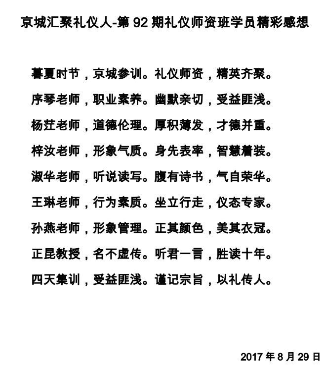 92期专业人才教育礼仪师资班学习心得—广州王老师