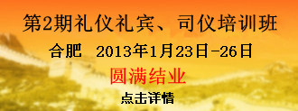 经研究决定于2013年1月23日至26日在安徽合肥举办“全国礼仪礼宾、司仪培训班”。